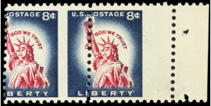 1042, Mint NH 8¢ Misperforation Error Margin Pair - Stuart Katz