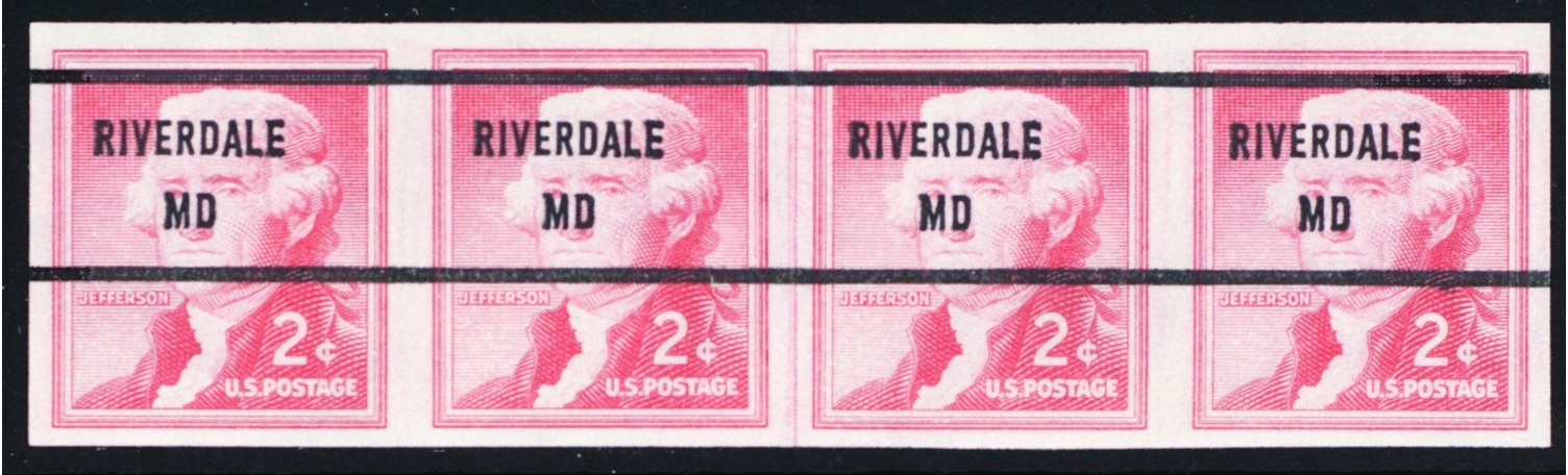 1055c, MNH XF 2¢ Imperforate Line Strip - Riverdale MD Precancel - SCV $1200