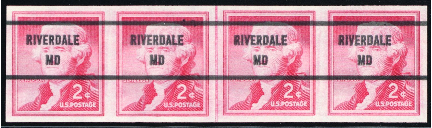 1055c, MNH XF 2¢ Imperforate Line Strip - Riverdale MD Precancel - Stuart Katz