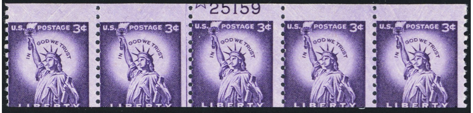 1057, Mint NH 3¢ Dramatic PL# Captured on Coil Line Strip Error - Stuart Katz
