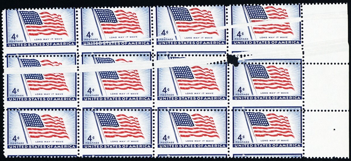 1094, MNH 4¢ Wide Pre Printing Paper Fold Error Block - WoW - Stuart Katz