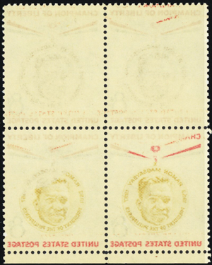1096, Mint NH 8¢ Reverse Printing Under Gum Freak Error Block - Stuart Katz