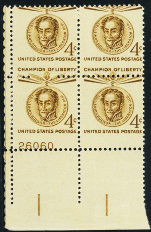 1110, Mint NH 4¢ Large Misperf Error Plate Block PL# Captured - Stuart Katz