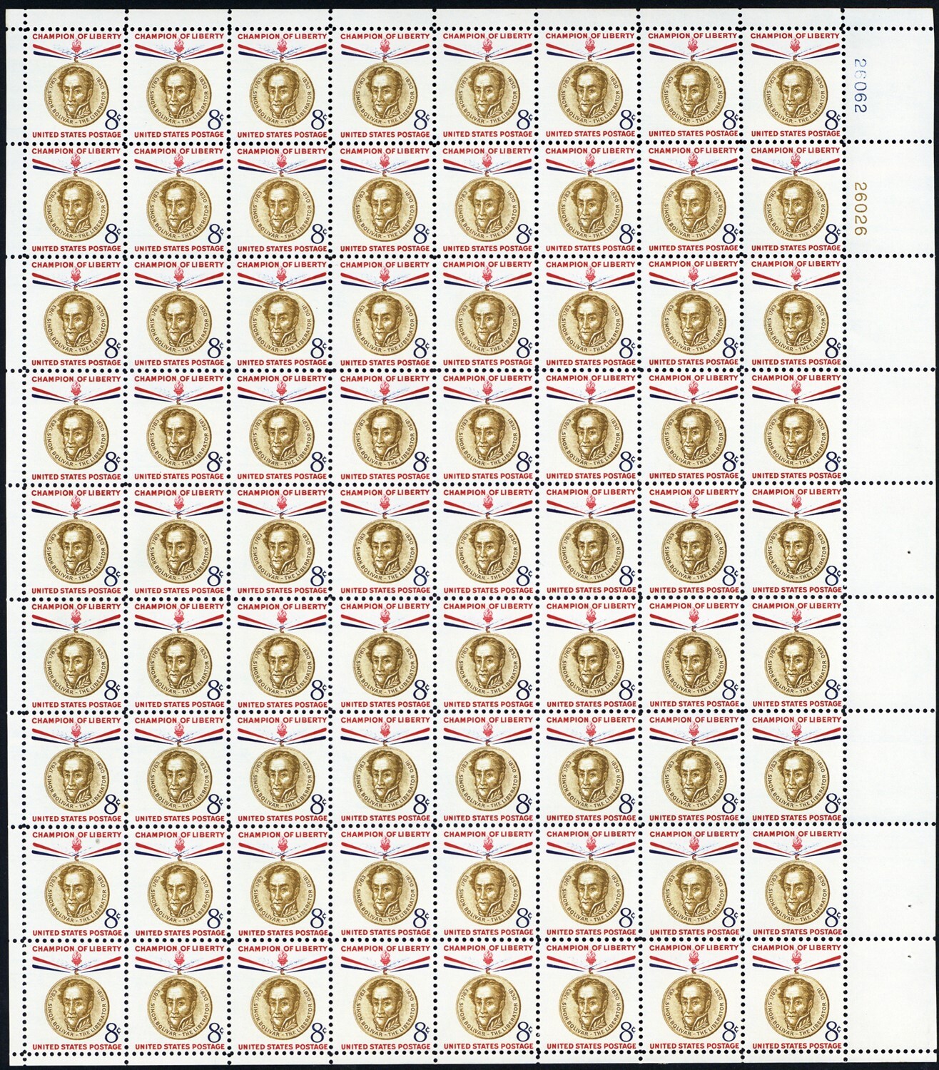 1111, MNH 8¢ Sheet With Light Blue Color Almost Omitted Error - Stuart Katz