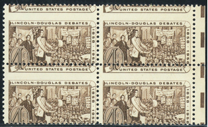 1115, Mint NH 4¢ Lincoln Misperf Shift Error Block of Four Stamps - Stuart Katz