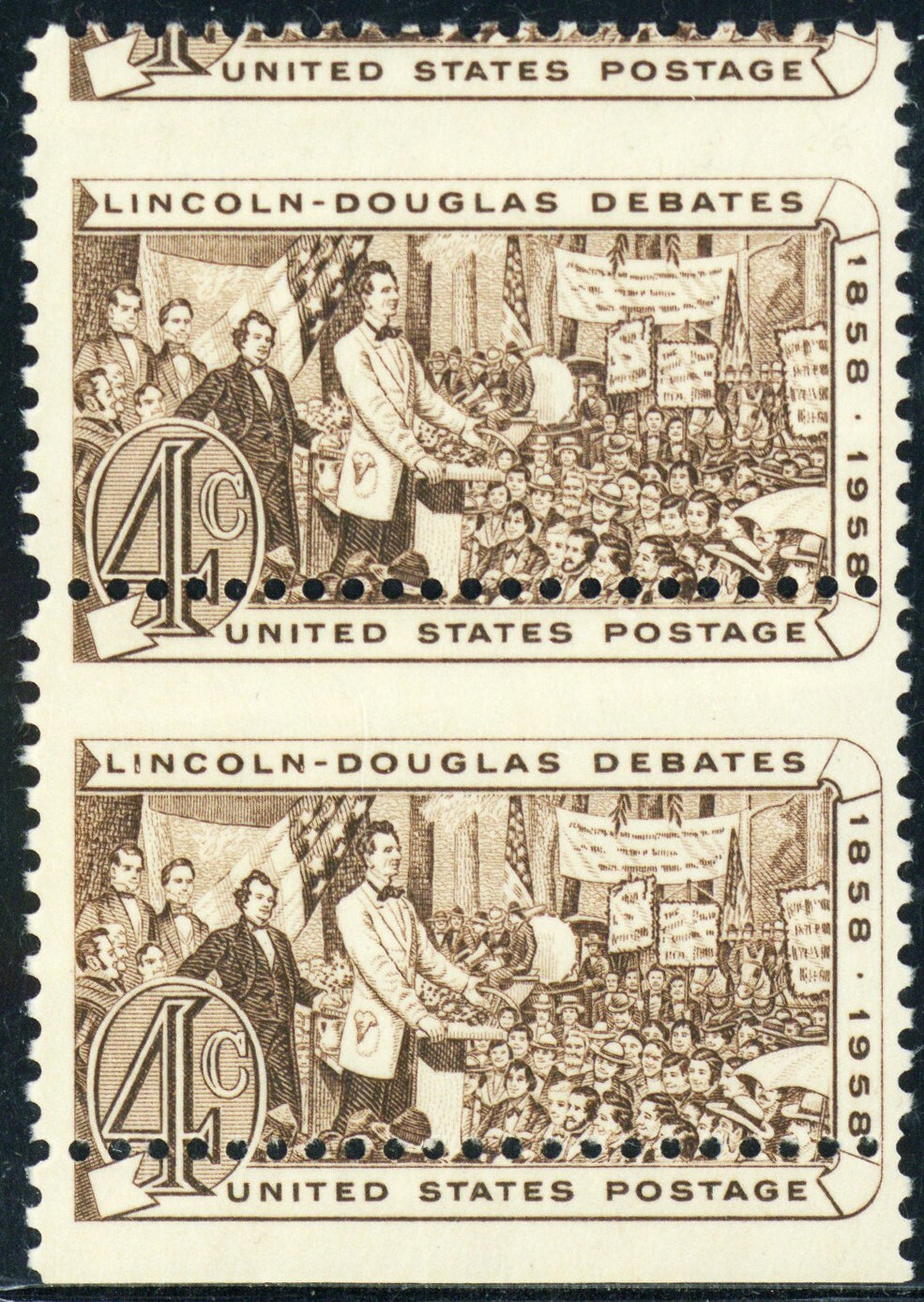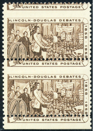 1115, Mint NH 4¢ Lincoln Misperf Shift Error Pair of Stamps - Stuart Katz