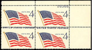 1132, Mint NH 4¢ Flag - Misperfed Plate Block Error PL# Captured - Stuart Katz