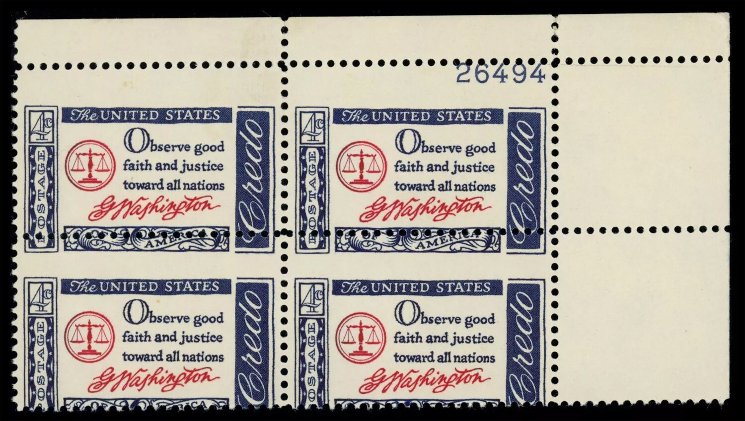 1139, MNH 4¢ - Misperfed Error PL# Captured Plate Block * Stuart Katz