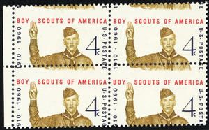 1145, Mint NH 4¢ Nice Misperf Error Block - Boy Scouts * Stuart Katz