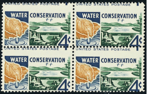 1150, Mint NH 4¢ Misperf Shift Error Block Water Conservation - Stuart Katz