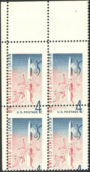 1158, 4¢ MISPERFED ERROR BLOCK WASHINGTON MONUMENT