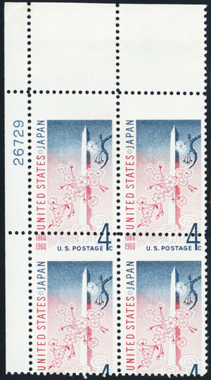1158, MNH 4¢ Dramatic Perf Shift Freak Error Plate Block - Stuart Katz