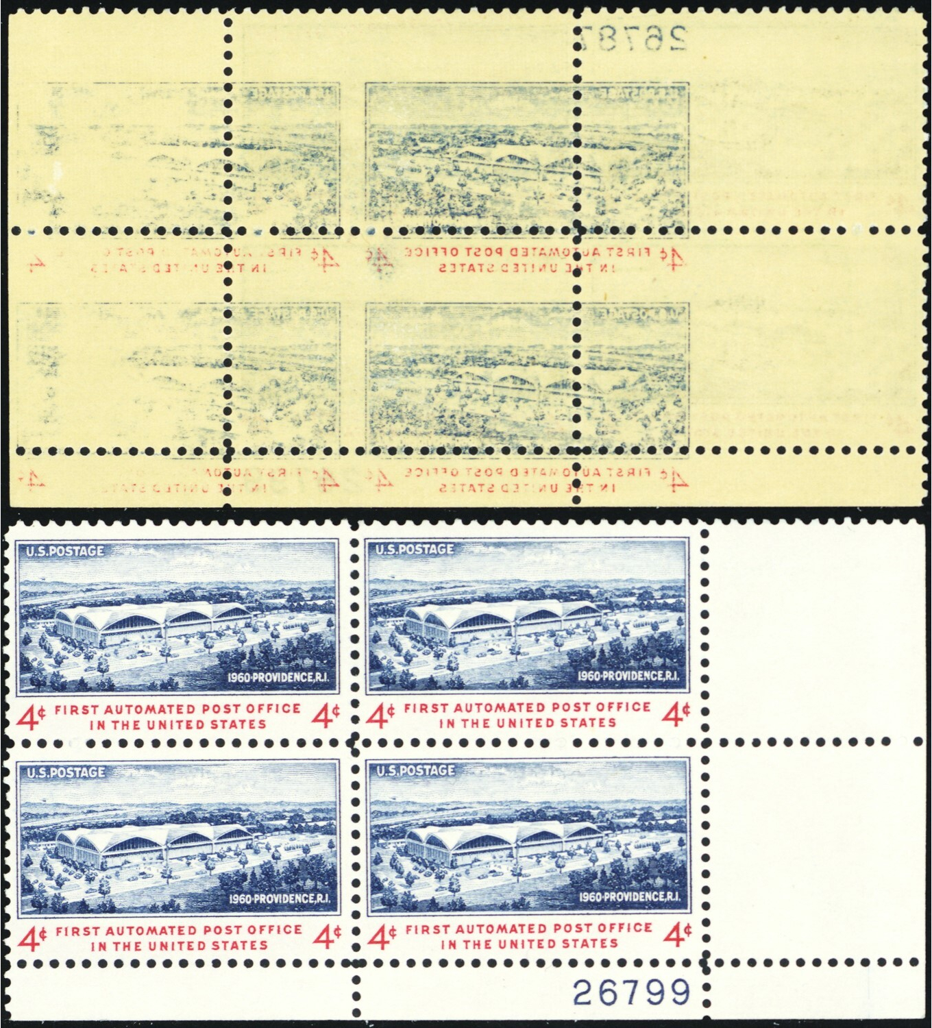 1164, MNH 4¢ - Strong Reverse Printing Under Gum Error Plate Block - Stuart Katz