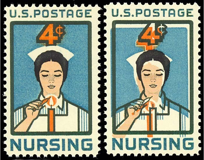 1190, Mint NH 4¢ Nursing Large Color Shift Error With Normal - Stuart Katz