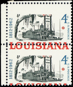 1197, Mint NH 4¢ Louisiana Misperforated ERROR Pair - Stuart Katz
