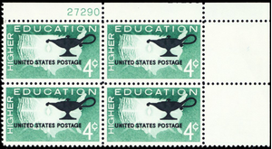 1206, MNH 4¢ Education Color Shift ERROR Plate Block of 4 Stamps - Stuart Katz
