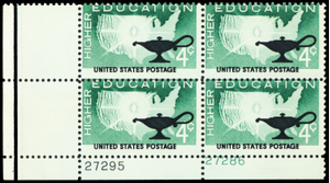 1206, MNH 4¢ RARE Green Color Shifted UP Error Plate Block - Stuart Katz