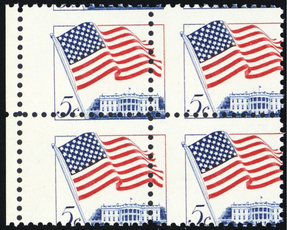 1208, Mint NH 5¢ Flag Misperfed Error Block of Four - Stuart Katz