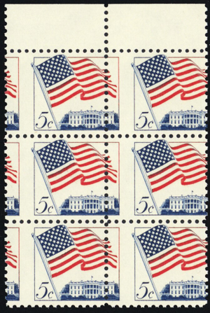1208, Mint NH 5¢ Flag Misperfed Error Block of Six - Stuart Katz