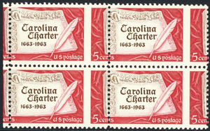 1230, Mint NH 5¢ RARE Misperf Shift Error Block of Four Stamps - Stuart Katz
