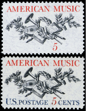 1252, Mint VF NH Blue Color Omitted ERROR 5¢ American Music - Stuart Katz