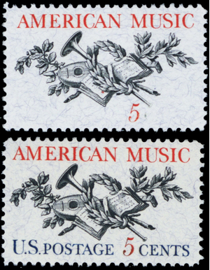 1252, Mint VF NH Blue Color Omitted ERROR 5¢ American Music -- Stuart Katz