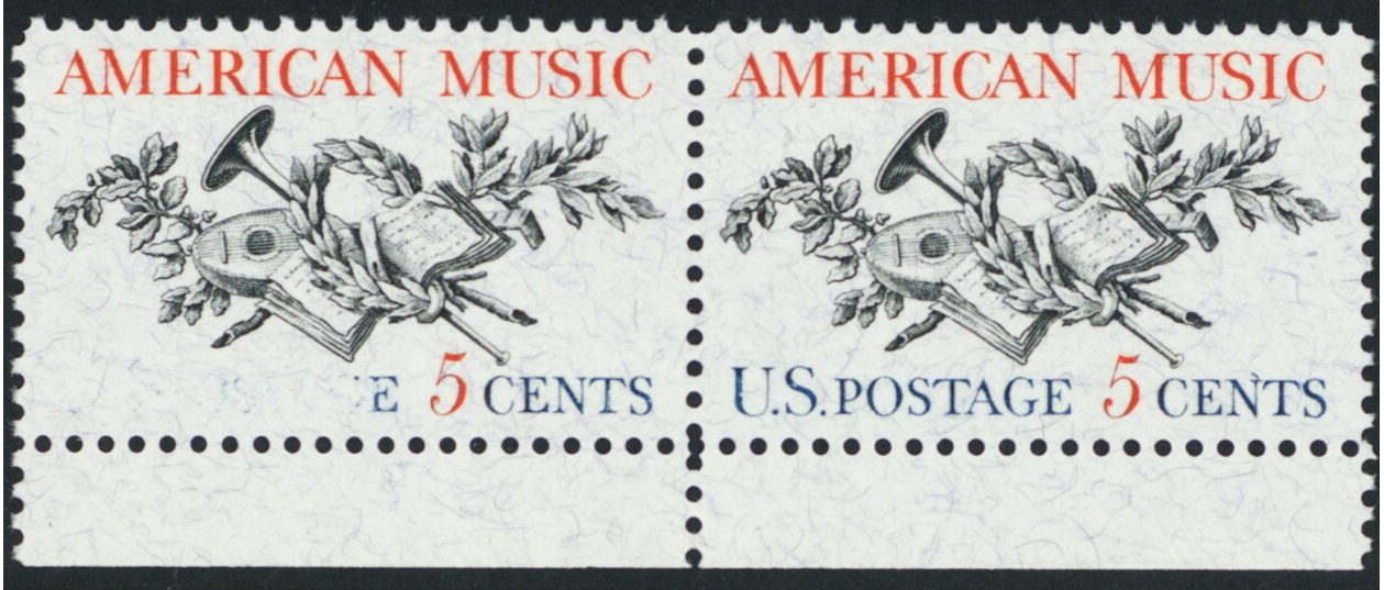 1252, MNH 5¢ Blue Color Almost Omitted Freak Error Pair - Stuart Katz