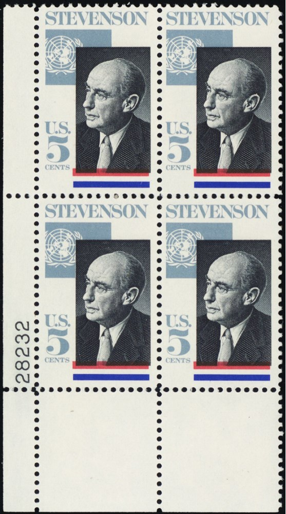 1275, Reverse Printing Error 5¢ Plate Block Mint NH - Stuart Katz