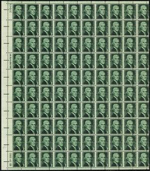 1278, Mint NH 1¢ - Large Misperforation Error Complete Sheet - Stuart Katz