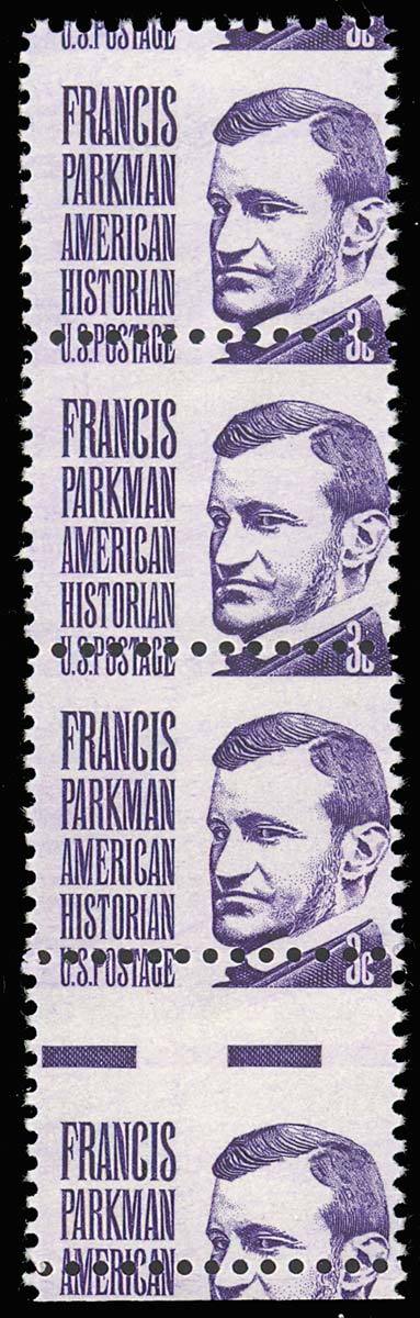 1281, 3¢ - Perf Shift Error Strip of Four Stamps With Gutter Between Stuart Katz