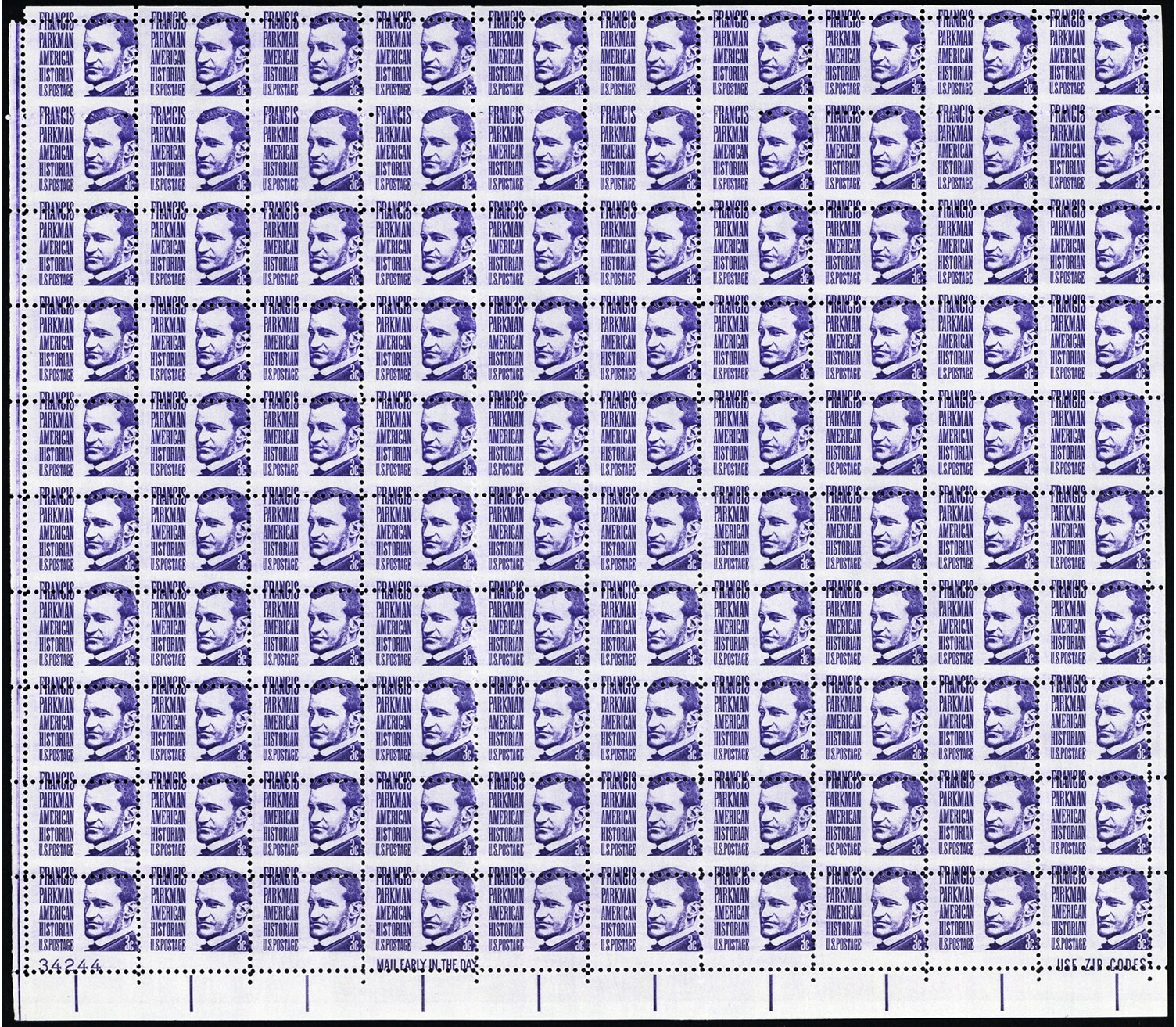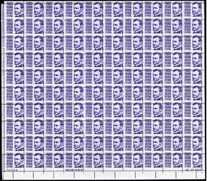 1281, Mint NH 3¢ - Full Misperforated Error Sheet of 100 Stamps - Stuart Katz
