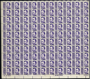 1281, MNH 3¢ RARE Misperfed Sheet of 100 Stamps Freaky Error - Stuart Katz