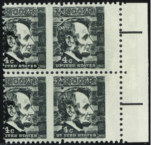 1282, Mint NH 4¢ Lincoln Misperforated Error Block of Four * Stuart Katz