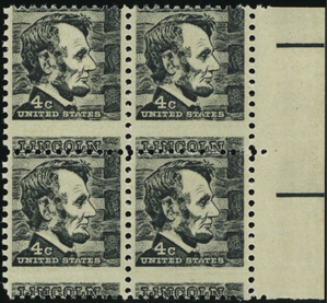 1282, MNH 4¢ Lincoln Misperfed Freak Error Block of 4 Stamps - Stuart Katz
