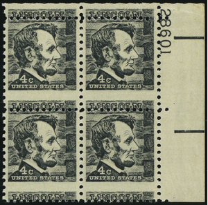 1282, MNH 4¢ Lincoln Misperfed Freak Error Plate Block of 4 Stamps - Stuart Katz