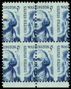 1283B, Mint NH 5¢ Large Perf Shift Block of Four WoW - Stuart Katz