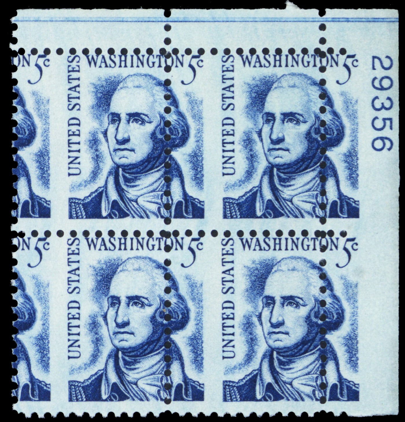 1283b, MNH (gum skips) 5¢ Misperf Shift Freaky Error Plate Block - Stuart Katz
