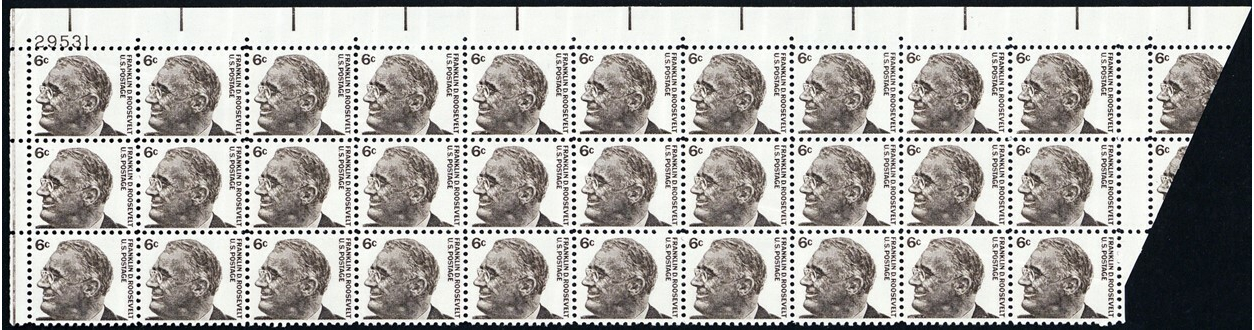 1284, MNH 6¢ IKE Large Miscut Error Snipe Block of 20 Stamps - Stuart Katz