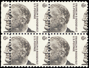 1284, Scarce Misperforation ERROR Block of Four 6¢ F.D.R. Mint NH - Stuart Katz