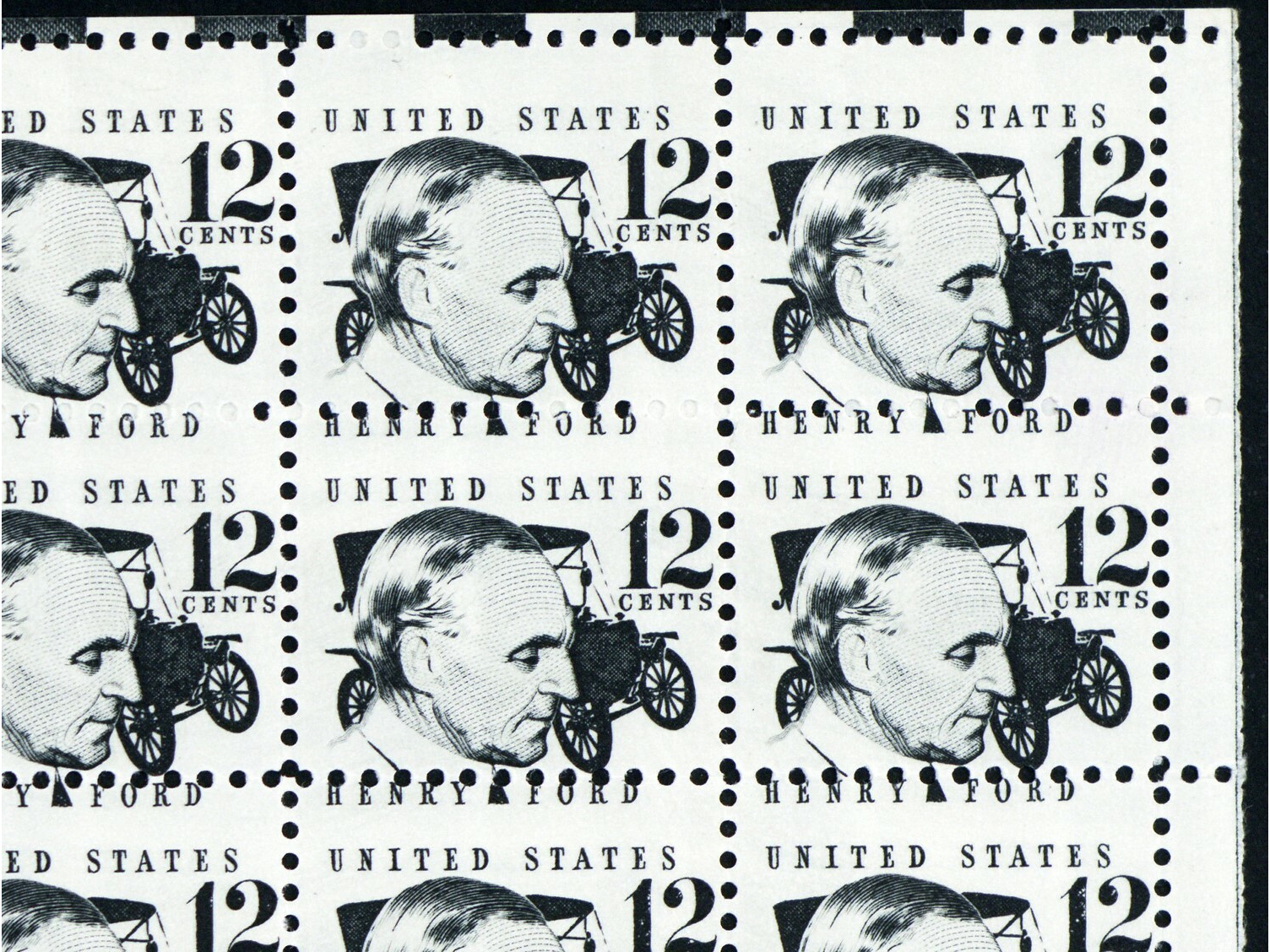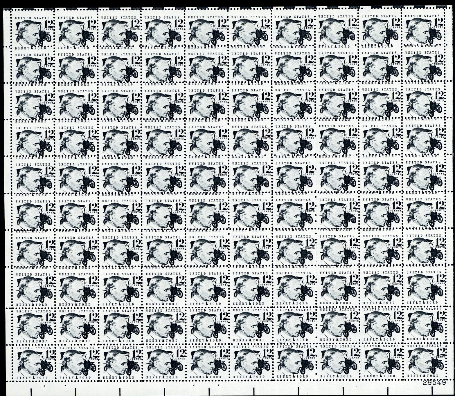 1286A, MNH 12¢ Misperf Freak Error Sheet of 100 Henry Ford Stamps * Stuart Katz