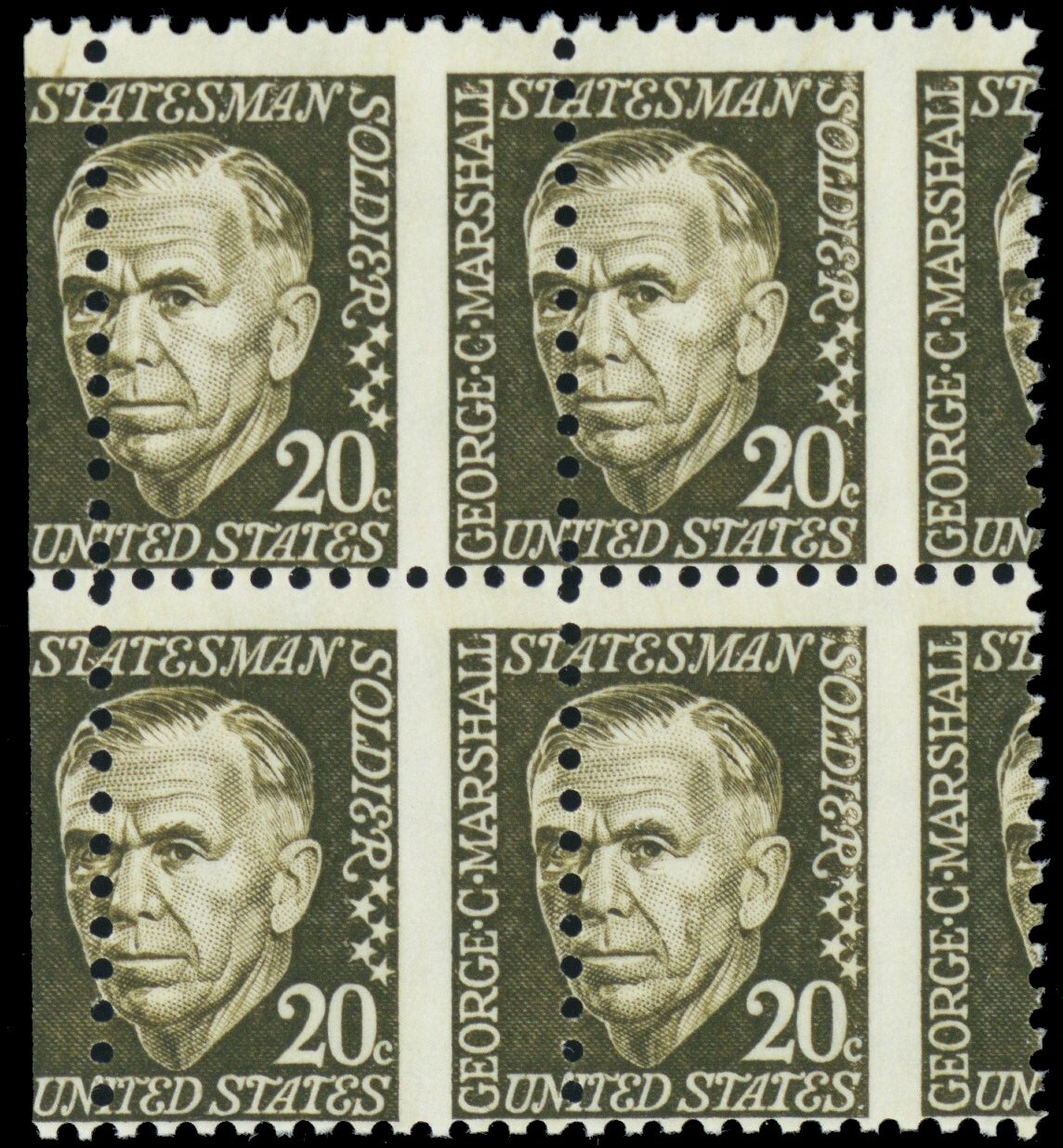 1289, Mint NH 20¢ Misperforation Error Block of Four - Marshall - Stuart Katz