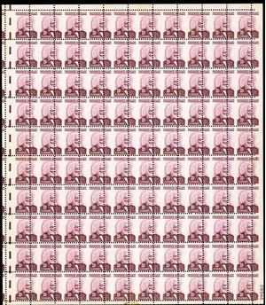 1290, MNH 25¢ VERY RARE Misperf Error Sheet of 100 Frederick Douglas Stuart Katz