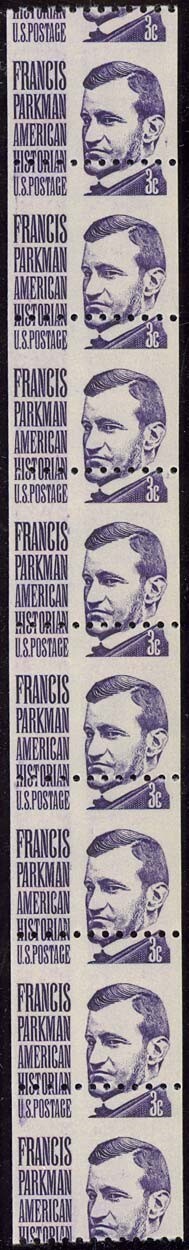 1297, MNH 3¢ RARE Misperforated Error Coil Strip of Eight Stamps - Stuart Katz