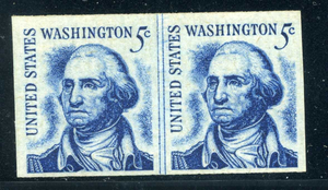 1304b, Imperf 5¢ Washington Coil Line Pair, Mint NH, Scott $250