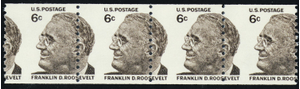 1305, MNH 6¢ Misperf Coil Strip of Four Freak Error * Stuart Katz
