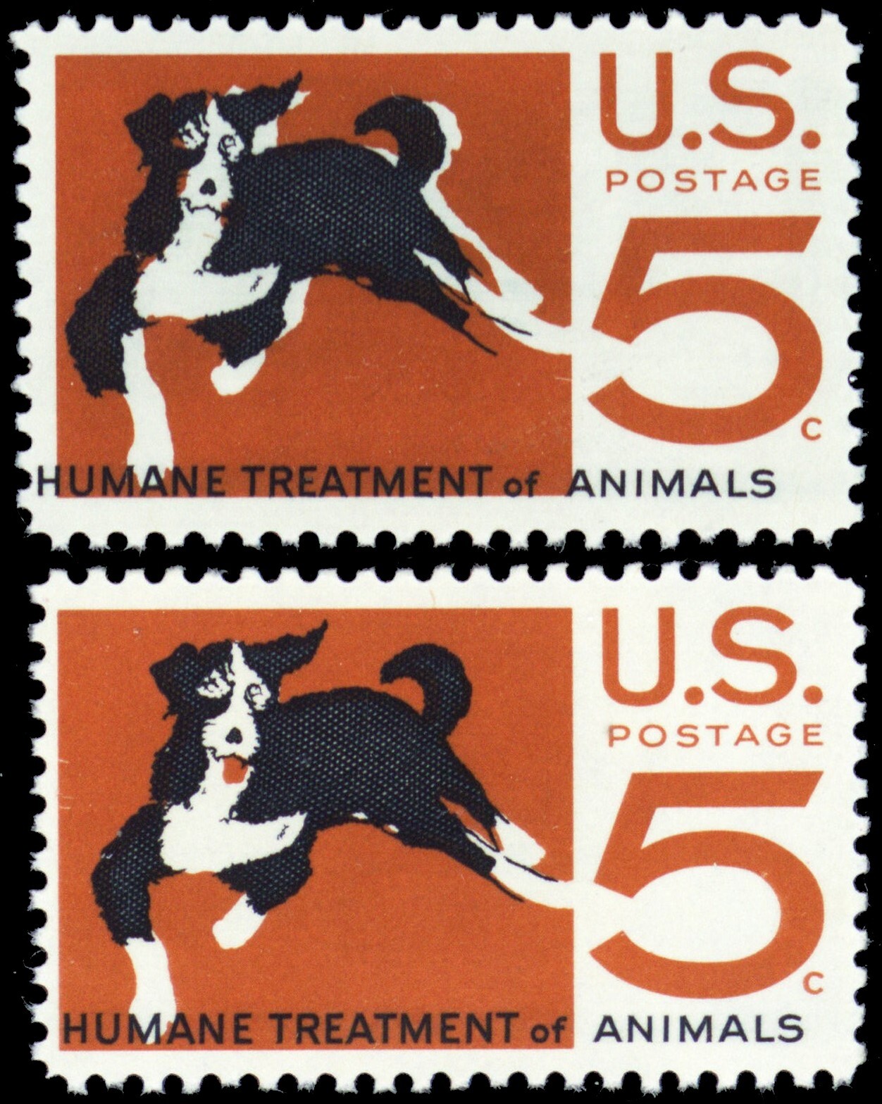 1307, Mint NH 5¢ Black Color Shifted Left Freak Error W/Normal * Stuart Katz