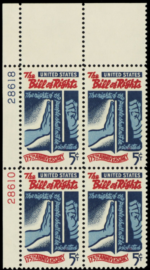 1312, Color Shifted Freaky Error Plate Block Mint NH 5¢ With Normal Stuart Katz