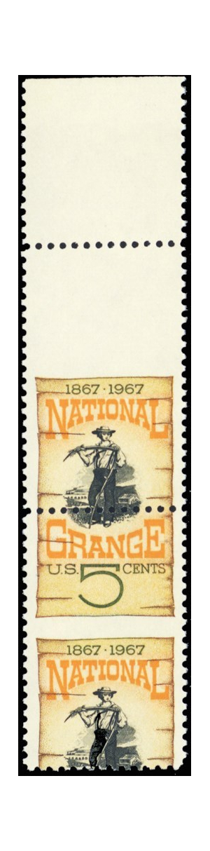 1323, Large Misperforation ERROR Pair on 5¢ Grange Mint NH Stuart Katz