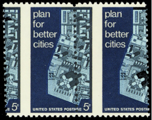 1333, Mint NH 5¢ Scarce Misperfed Error Pair - Better Cities - Stuart Katz
