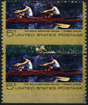 1335, MNH 5¢ Pair - Perfs Shifted Freaky Error - Eakins ** Stuart Katz
